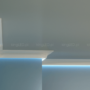 Wizualizacja przedstawia efekt rozlania światła po ścianie. Taki efekt uzyskuje się z montażu gzymsu oświetleniowego z taśmą LED. Światło równomiernie rozświetla sufit co jest piękną dekoracją, oraz przyjemnym dla oka światłem które może być na tyle mocne żeby dało się przy nim czytać. Światło z taśmy LED może być regulowane za pomocą sterownika.