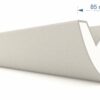 Gzymsy z naszej oferty, wykonane są ze styropianu i dodatkowo są pokryte grubą warstwą masy piaskowej, która nie przebija światła. Dla porównania, tanie gzymsy wykonane są z materiału XPS który nawet po pomalowaniu, przebija światło, więc zamiast ładnie wyglądać, przebija przez niego światło i wygląda jak niedomalowany.