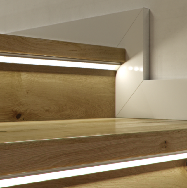 Oprawy schodowe produkujemy z profili nawierzchniowych, wpuszczanych i nawierzchniowych kątowych: