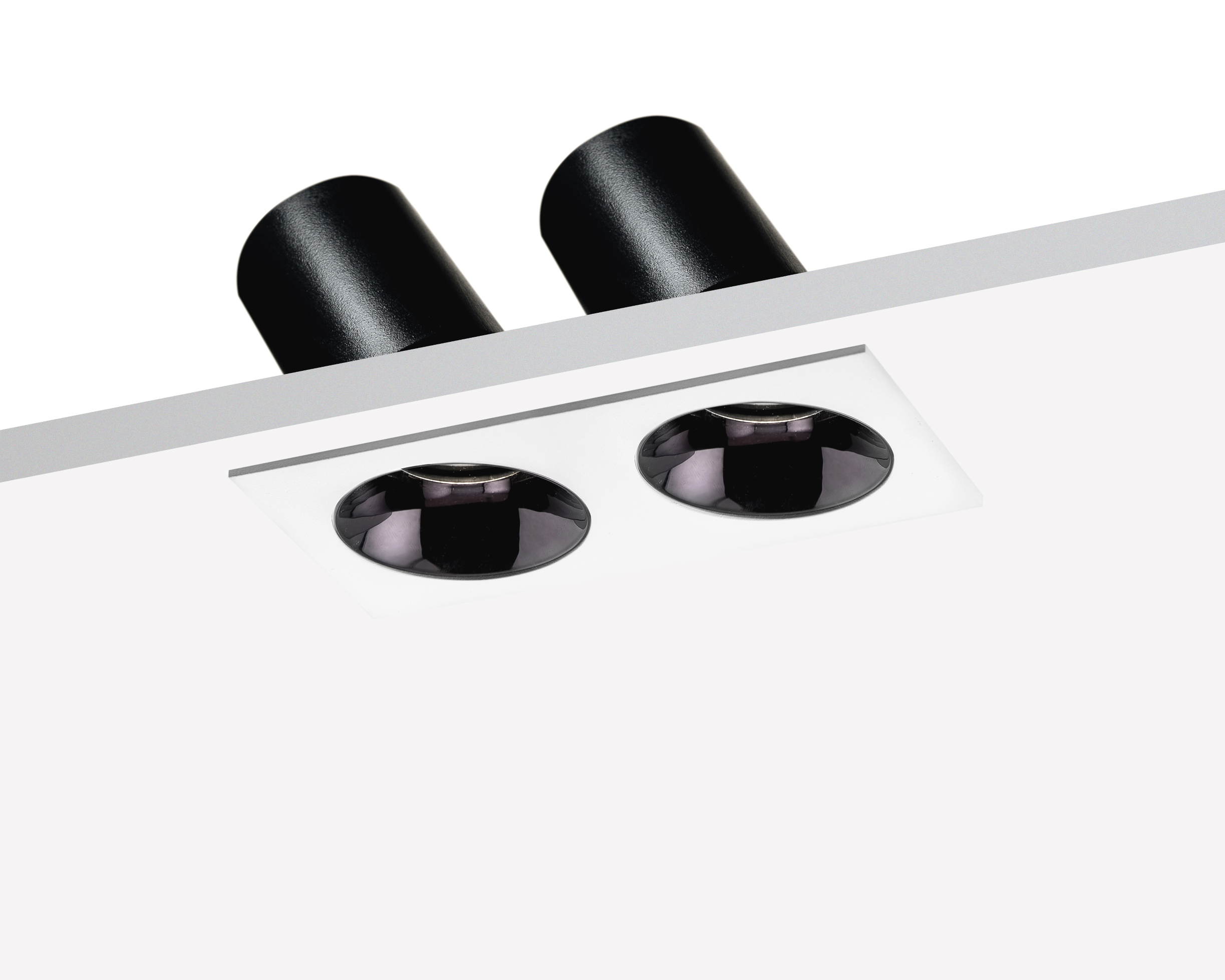 Spotlight podwójny podtynkowy kwadratowy 2x7W LED (14W) CRI>90 AURORA TX7 zoomLED® ruchomy biało czarny