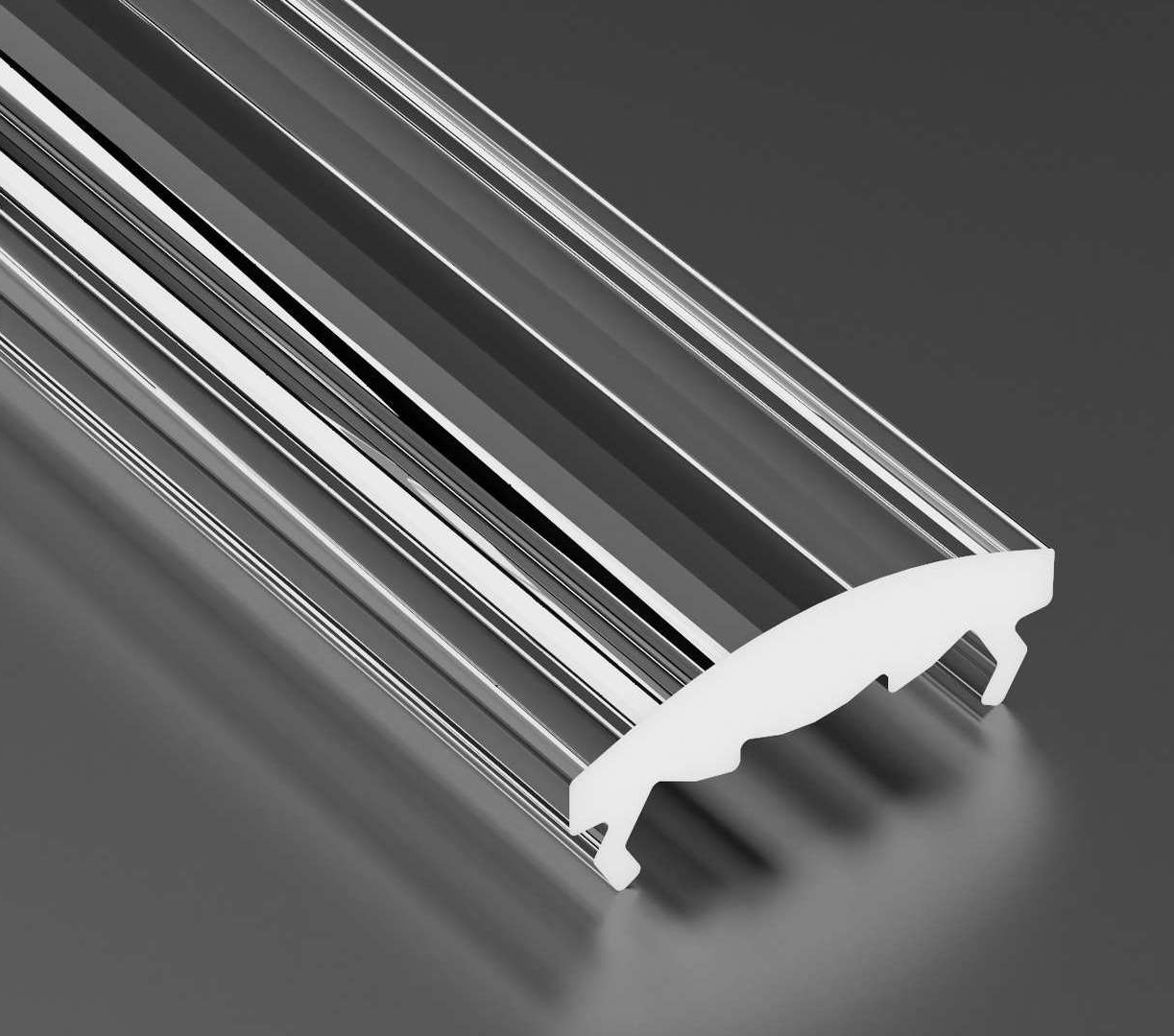 Klosze do profili meblowych LENS 30 to wysokiej jakości płaskie przesłony wykonane z trwałego tworzywa sztucznego PMMA, przeznaczone do nowoczesnych systemów oświetlenia meblowego.