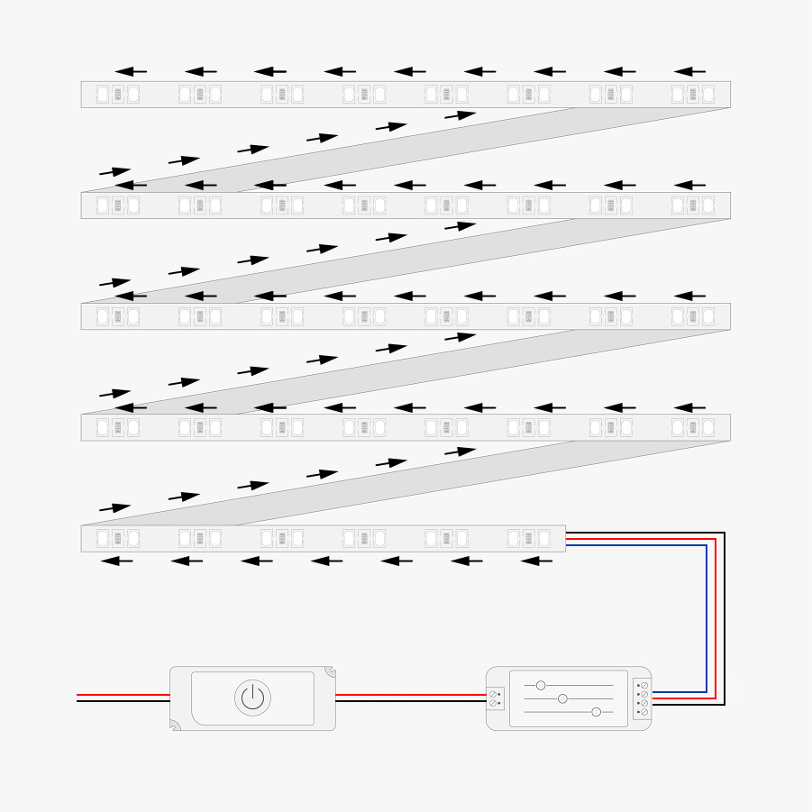 Zasilanie na 24V to również mniejsze spadki napięcia, które rozchodzi się po pasku, więc można tworzyć dłuższe odcinki światła. Dodatkowym i bardzo pomocnym aspektem jest fakt że potrzeba 2x mniejszej mocy sterowników, przydatnych do kontrolowania światła w taśmach LED na 24V
