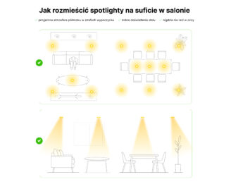 Oprawy sufitowe przez wzgląd na swoją różnorodność oraz szeroki zakres pobieranej mocy i ilości lumenów idealnie sprawdzą się w pomieszczeniach o każdej wysokości. Do niskiego pomieszczenia można wybrać źródło światła o mniejszym rozmiarze i mniejszej mocy, a do wysokiego odpowiednio większy model o większej mocy, który oświetli dany obszar bardzo skutecznie. Warto też zwrócić uwagę na to co ma być oświetlane przy użyciu opraw Downlight, bo inna ilość światła potrzebna jest w salonie, a inna w miejscu do pracy. Dodatkowo na etapie projektu lub remontu, budowy danego pomieszczenia warto zastanowić się jaki efekt oświetleniowy chcemy uzyskać i na jakiej wysokości wykonać sufit. Wtedy jest możliwość wcześniej zaplanować zakup odpowiednich dla siebie opraw, wybrać moc odpowiednią dla swoich potrzeb oraz warunków pomieszczenia.oprawy sufitowe wpuszczane led - jaka moc oprawy na pomieszczenie?